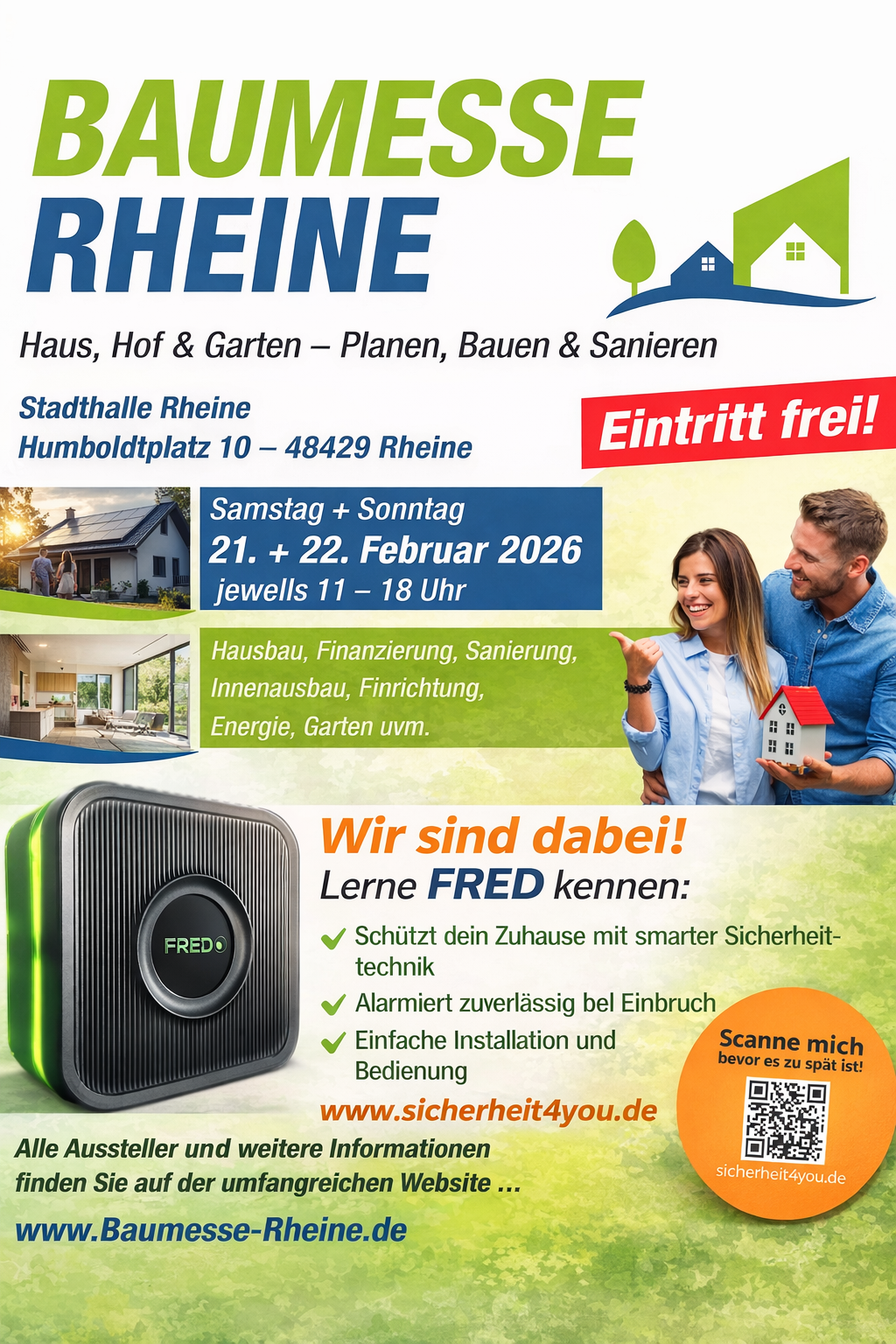 Am 21. und 22. Februar 2026 sind wir von Sicherheit4You auf der Baumesse Rheine in der Stadthalle Rheine vertreten.