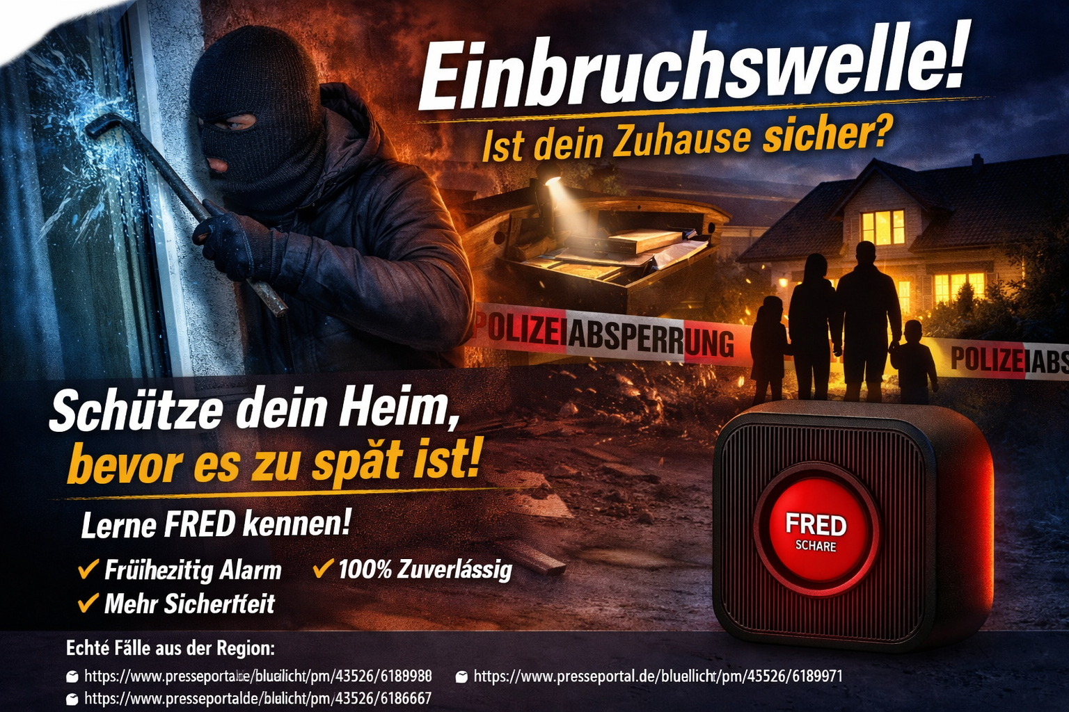 Dann lerne FRED kennen – wir zeigen dir, wie du dein Zuhause schützen kannst, bevor der nächste Einbruch geschieht.